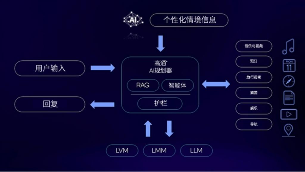 其次,高通的硬件布局广泛,全面覆盖了手机、PC、汽车、XR 头显、工业网络等多元终端,为智能体 AI 的跨场景应用奠定基础。在不同终端上,智能体 AI 能够实现功能的无缝切换与协同工作,从而更好地满足用户在各种场景下的个性化需求,为用户带来连贯且优质的体验。
